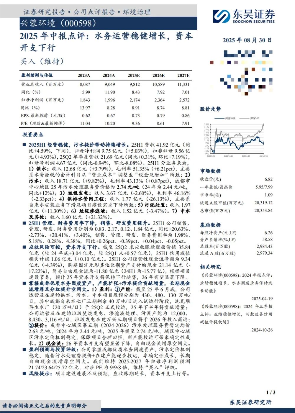 答:近年来,公司因实施多个供排水、固废项目建设,资本开支较大。上述项目大多在未来 1-2 年内建成投运并释放效益,项目建成投运后,相应的资本开支会逐步下降。公司重视股东回报,随着公司当前在建项目陆续建成投运并释放产能,公司自由现金流将更为充裕,未来将在兼顾公司经营发展资金需求的基础上,着力提升分红水平。