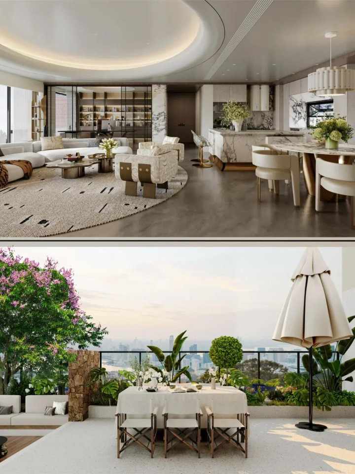 其实第四代住宅就是带超大阳台的大平层,因为超大阳台是错层分部的,所以每个阳台的高度都有6米高左右,这些阳台不允许封,室内与阳台之间的门洞都很大,这些阳台主要是以种植绿植为主,有些还可以搞游泳池。